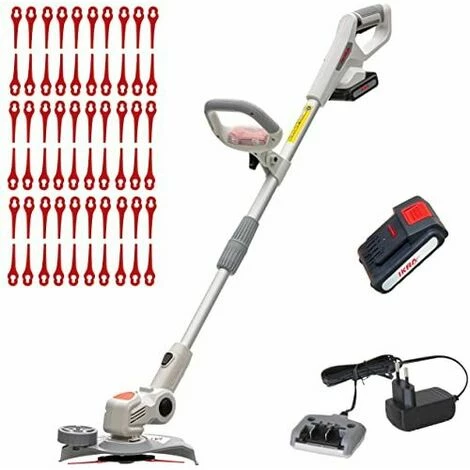Largeur de coupe 25cm, lames nylon pour une coupe nette, 60x lames nylon inclus, poignée secondaire réglable réglage en hauteur télescopique pour un travail agréable et sans douleur, sans se pencher, poignées avec `soft grip` réglage de l`angle de coupe sur 5 positions pour couper sous les buissons et les bancs, tête de coupe tournante á 180° pour coupe à la verticale roue de guidage pour bordures, compartiment porte-lame inégré dans la poignée batterie 20v 2,0 ah & 1x chargeur standard inclus, autonomie max. 30 min., appareil léger 2,3 kg, batterie également adaptée pour taille-haie iahs 20-1, taille-haie télescopique ipch 2040, tronçonneuse icc 2/2035, élagueuse icps 2020, souffleur iab 20-1, souffleuse à feuilles icb 20, aspirateur/souffleur icbv 2/20 & tondeuse icm 2/2037 | Livraison gratuite sous 2 à 5 jours ouvrés. Garantie 2 ans pièce mains d’œuvre et déplacement. PAS DE LIVRAISON EN DOM-TOM