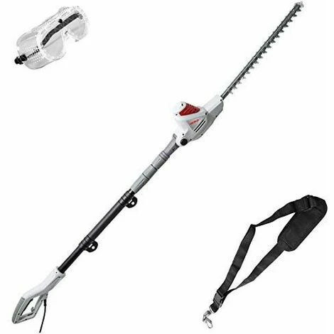 Haut rendement de coupe et faible vibration, coupe langueur: 51,4 cm, écartement: 20mm longueur de la taille-haie réglable en hauteur 1,95 – 2,40m, réglage de l`angle de coupe sur 5 positions jusqu`à 120° lames aux mouvements opposés, taillées au laser et affûtées au diamant, sur rail en aluminium, lames galvanisées avec protection anticorrosion interrupteur de sécurité, butée de protection de la lame, arrêt immédiat électrique très facile: manche télescopique en fibre de verre et en aluminium, sangle et lunettes de protection incluse | Livraison gratuite sous 2 à 5 jours ouvrés. Garantie 2 ans pièce mains d’œuvre et déplacement. PAS DE LIVRAISON EN DOM-TOM