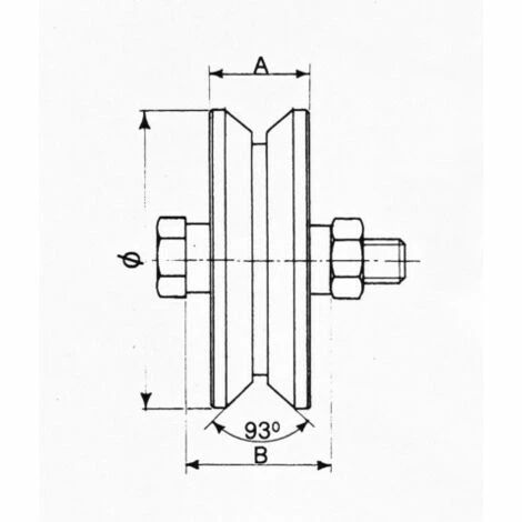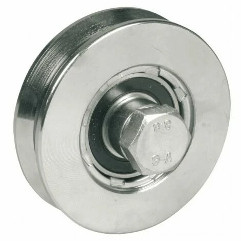 Détails : Roues à gorge en V en acier bichromaté, vis 14 x 70 mm
